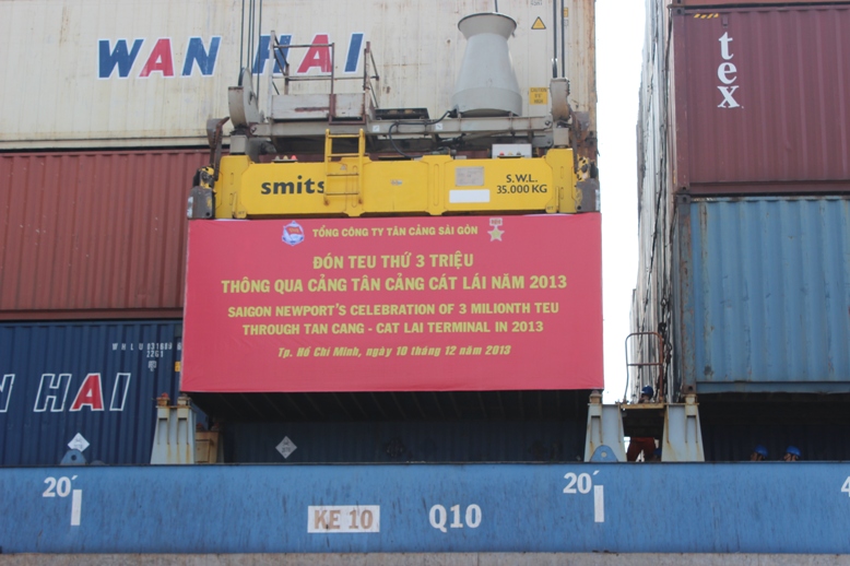 Ngày 10-12-2013, cán bộ công nhân viên chiến sỹ Tổng Công ty Tân Cảng Sài gòn đã long trọng tổ chức Lễ đón Teu thứ 3 triệu thông qua Cảng Tân Cảng-Cát Lái. Trong điều kiện suy thoái kinh tế tài chính thế giới và sản lượng hàng xuất nhập khẩu qua các Cảng tại Việt Nam sụt giảm mạnh, 3 triệu Teu container tương đương 42 triệu tấn hàng thông qua Cảng Tân Cảng- Cát Lái ngay trong những ngày đầu tháng 12 năm 2013 thật sự là một sự kiện đầy ấn tượng. Sự kiện này một lần nữa khẳng định mức tăng trưởng ổn định bền vững của Tổng Công ty Tân Cảng Sài Gòn- nhà khai thác Cảng container hàng đầu Việt Nam.